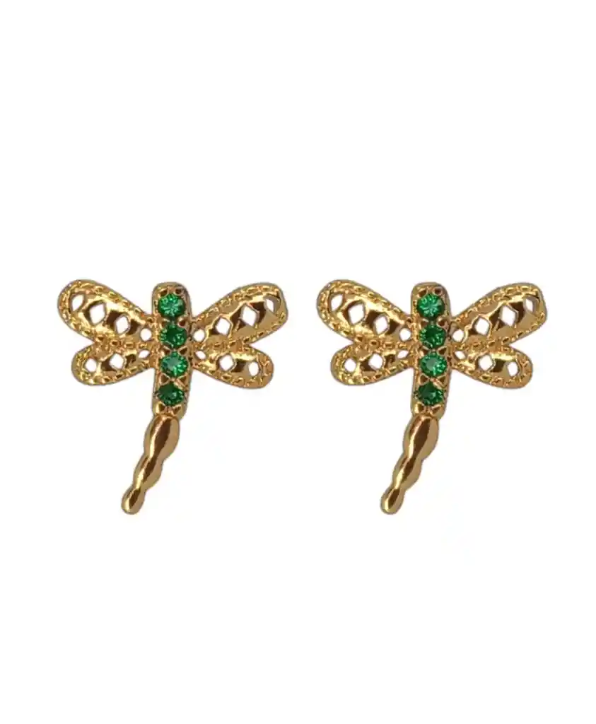 Presentación: Tipo Topo (Cierre Mariposa) Material: Acero Quirúrgico Color: Dorado Diseño: Libelula con circones Producto Hipoalergénico. Caracteristicas: Es un material que no se oxida, no se oscurece con el tiempo, su tonalidad y brillo no se alteran. Es Antialérgico, la cantidad de níquel que tiene es residual por lo que en rarisimas ocasiones causa alergias. No necesita mantenimiento. Es un material duro, 1000 veces más duro que el platino y no se deforma.