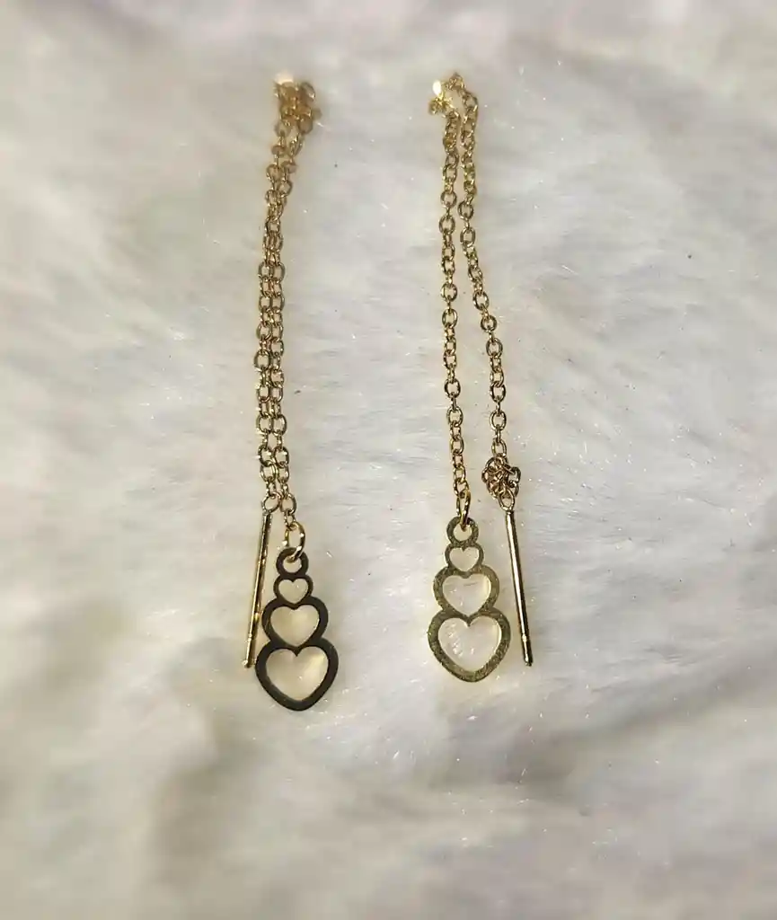 ARETES EN ACERO INOXIDABLE LARGOS - DORADOS FORMA DE CORAZON