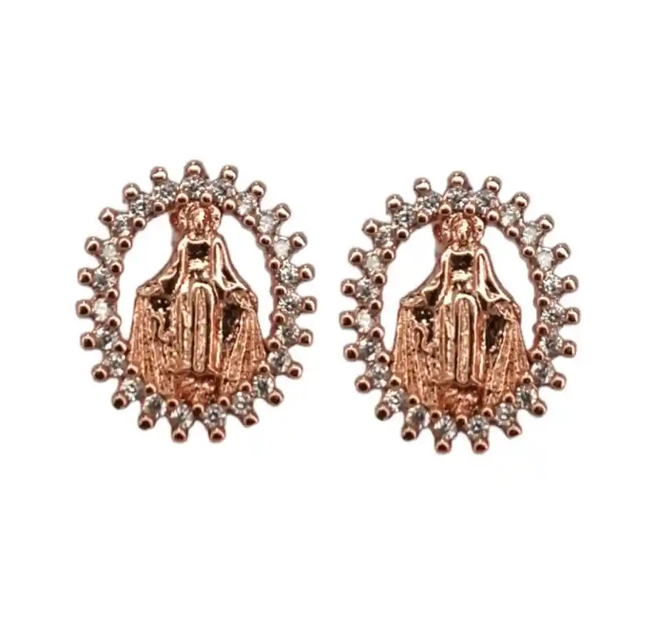 Presentación: Tipo Topo (Cierre Mariposa) Material: Acero Quirúrgico Color: Oro Rosa Diseño: San Benito Producto Hipoalergénico. Caracteristicas: Es un material que no se oxida, no se oscurece con el tiempo, su tonalidad y brillo no se alteran. Es Antialérgico, la cantidad de níquel que tiene es residual por lo que en rarisimas ocasiones causa alergias. No necesita mantenimiento. Es un material duro, 1000 veces más duro que el platino y no se deforma.