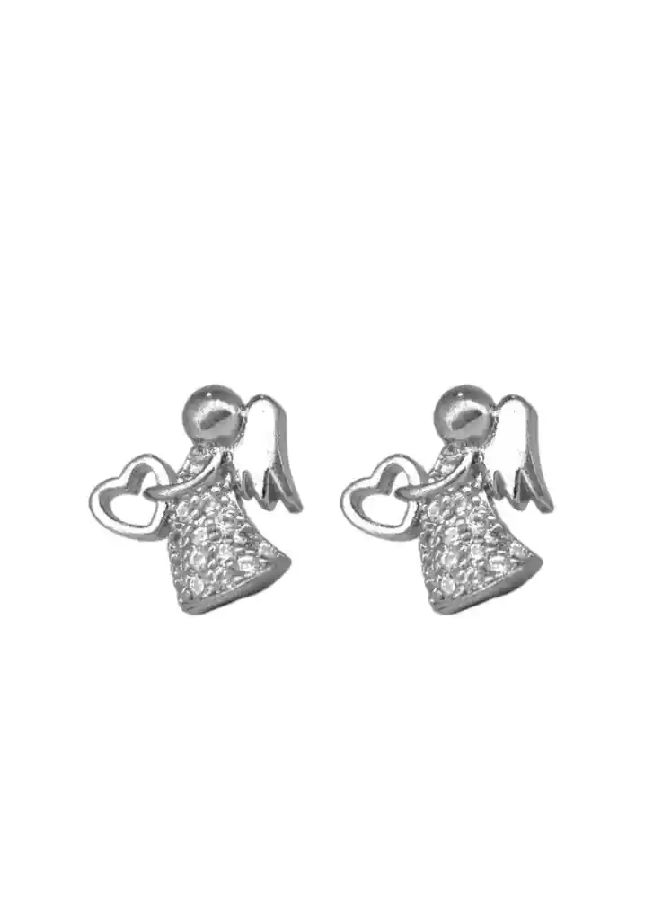 Presentación: Tipo Topo (Cierre de seguridad) Material: Acero Quirúrgico Color: Plateado Diseño: Angel con circones Producto Hipoalergénico. Caracteristicas: Es un material que no se oxida, no se oscurece con el tiempo, su tonalidad y brillo no se alteran. Es Antialérgico, la cantidad de níquel que tiene es residual por lo que en rarisimas ocasiones causa alergias. No necesita mantenimiento. Es un material duro, 1000 veces más duro que el platino y no se deforma.