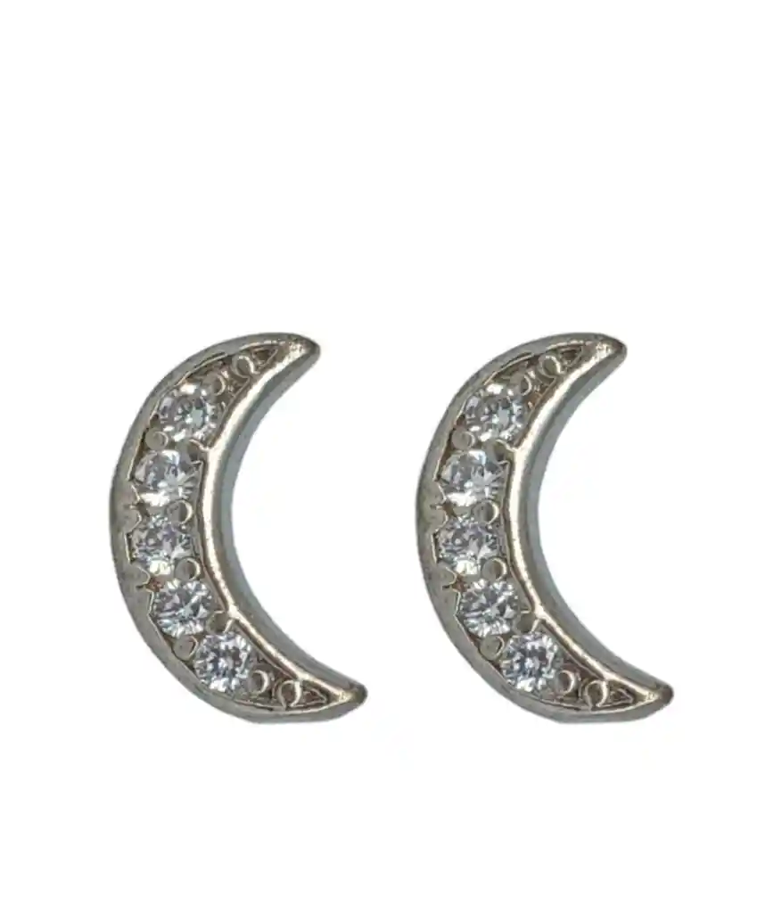 Presentación: Tipo Topo (Cierre de seguridad) Material: Acero Quirúrgico Color: Plateado Diseño: Luna con circones Producto Hipoalergénico. Caracteristicas: Es un material que no se oxida, no se oscurece con el tiempo, su tonalidad y brillo no se alteran. Es Antialérgico, la cantidad de níquel que tiene es residual por lo que en rarisimas ocasiones causa alergias. No necesita mantenimiento. Es un material duro, 1000 veces más duro que el platino y no se deforma.