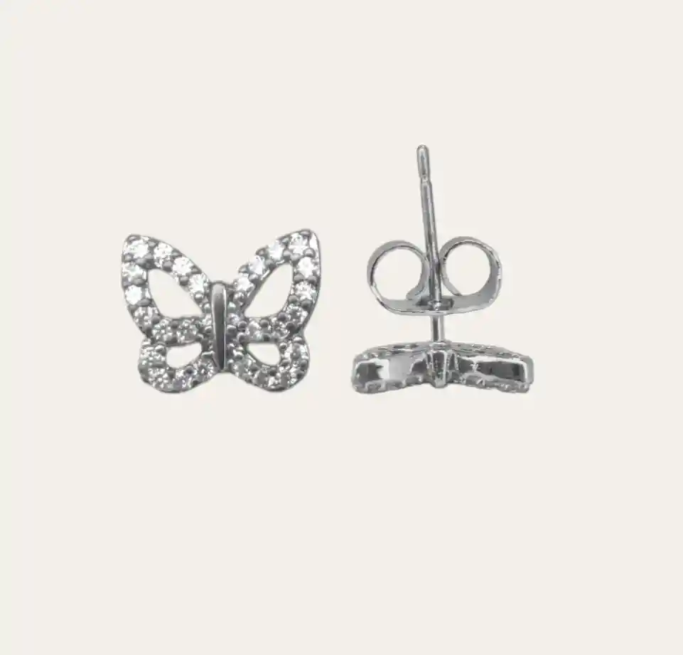 Presentación: Tipo Topo (Cierre Mariposa) Material: Acero Quirúrgico Color: Plateado Diseño: Mariposa Con Circones Producto Hipoalergénico. Caracteristicas: Es un material que no se oxida, no se oscurece con el tiempo, su tonalidad y brillo no se alteran. Es Antialérgico, la cantidad de níquel que tiene es residual por lo que en rarisimas ocasiones causa alergias. No necesita mantenimiento. Es un material duro, 1000 veces más duro que el platino y no se deforma.