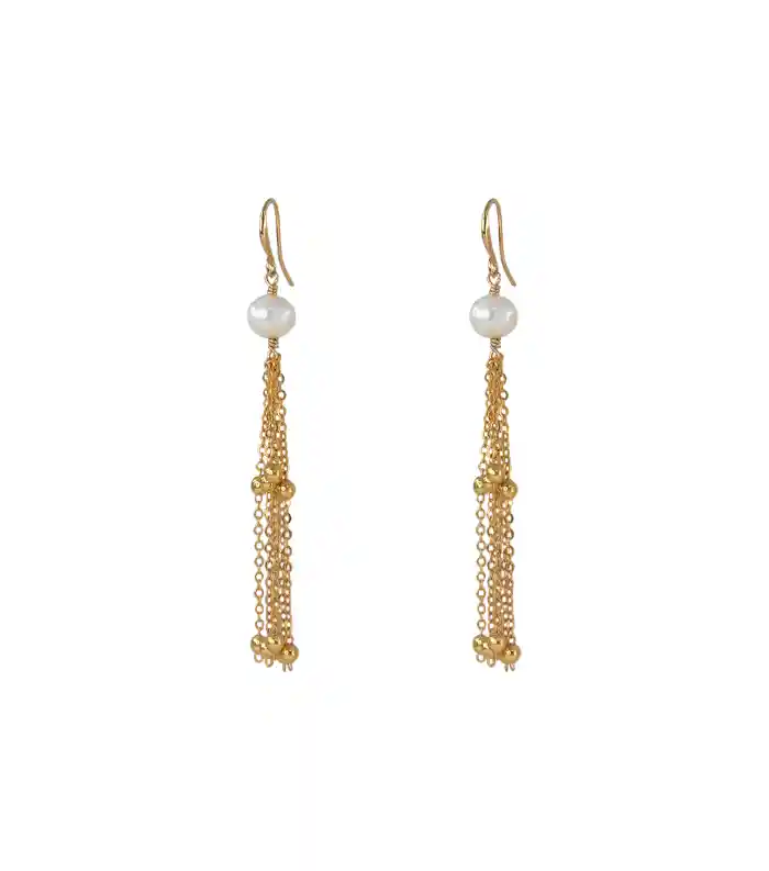 Aretes con perlas de rio. Cadenas y herraje en bronce con baño en oro. Materiales libre de niquel.