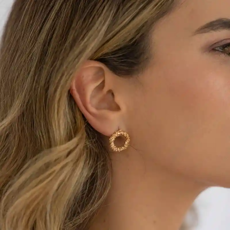 Topitos en forma de circulo, son sobrios, llamativos y hermosos! Material: Goldfield.