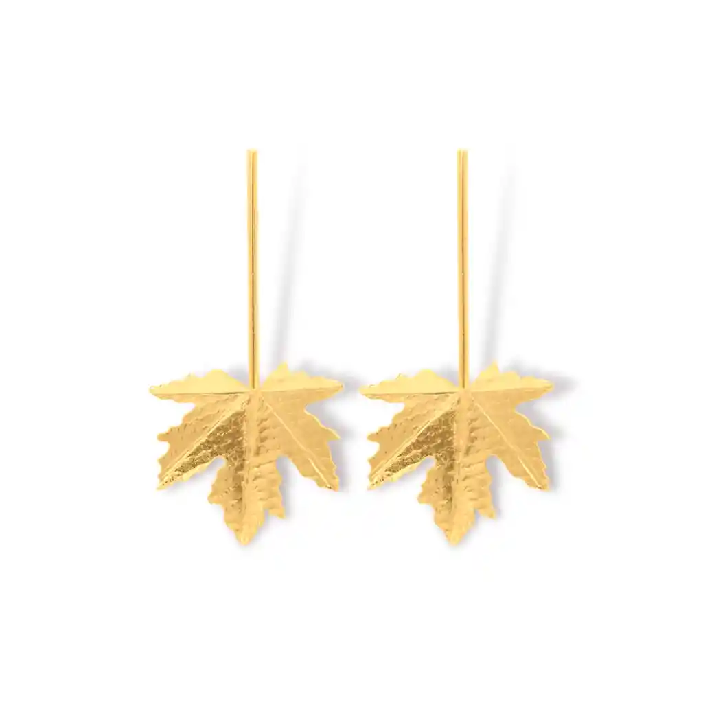 Los aretes de maple largos están hechos en oro de 24K y bronce, los metales más resistentes. Las piezas están producidas a mano con un acabado de alta calidad que hace que estos pendientes sean únicos. Son adecuados para el uso diario, ¡pero también como un regalo especial para alguien a quien quieres!