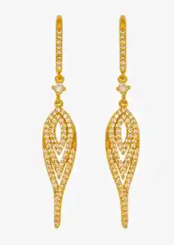 Hermosos Aretes Largos con baño de oro dorado, con circones transparentes. Largo: 4 cm
