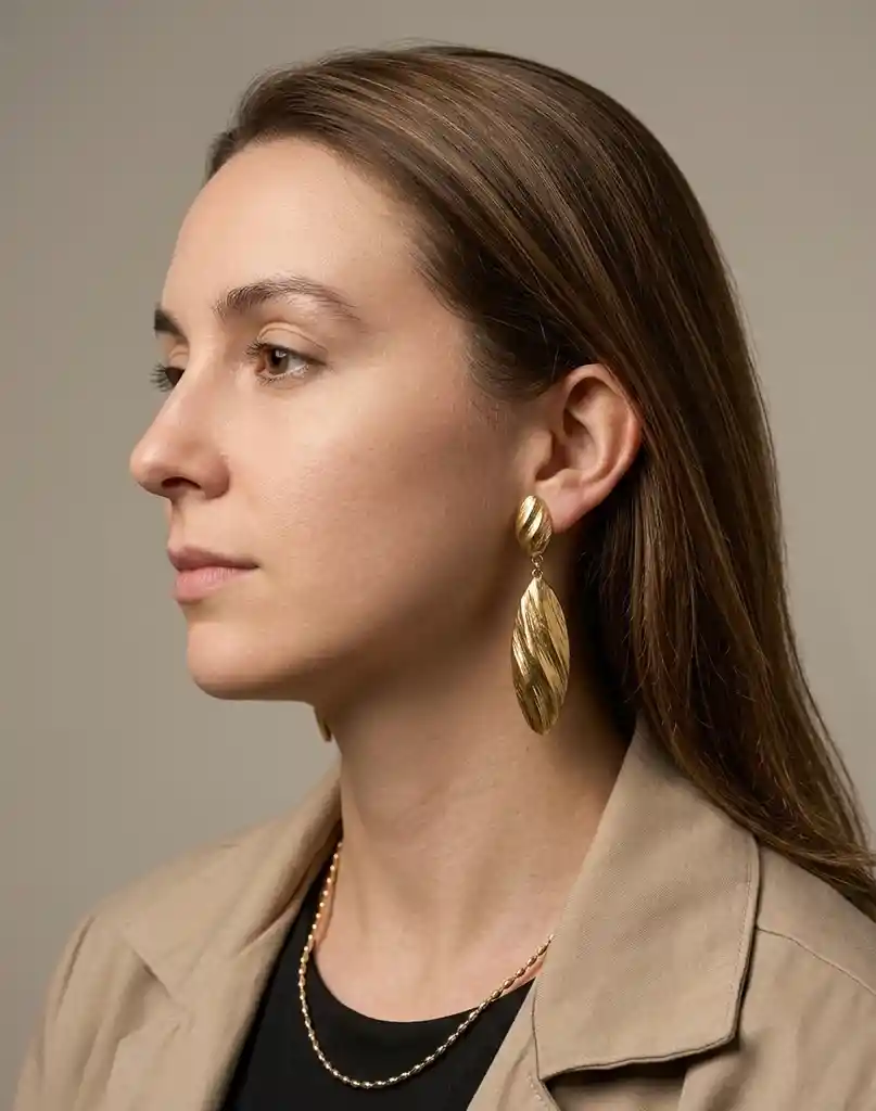 Aretes largos en acero inoxidable con textura elegante, ideales para elevar cualquier look.