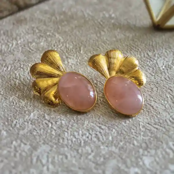 Diseño en bronce bañado en oro, acompañado con piedra cuarzo rosa