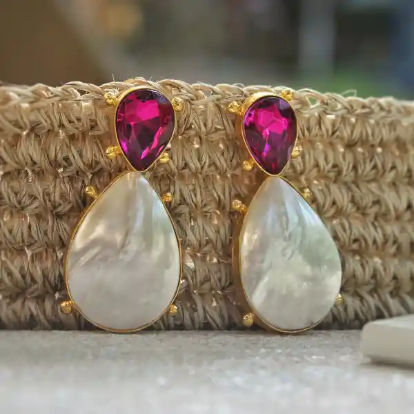 Diseño en bronce bañado en oro de 24k, acompañado por un cristal magenta
