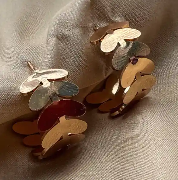 Candongas en forma de hojitas en color dorado. (Precio por par) Material: Oro goldfield Color: Dorado