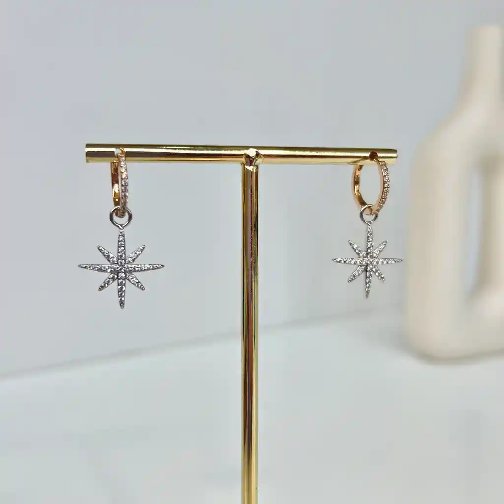 Los aretes "Luz Celestial" están diseñados para la mujer que brilla con su propia luz. Con una estrella suspendida elegantemente, estos aretes simbolizan la fuerza interior y la elegancia inquebrantable de quien sabe lo que quiere. Son el toque perfecto para resaltar tu poder, dejando una huella de luminosidad en cada paso que des.