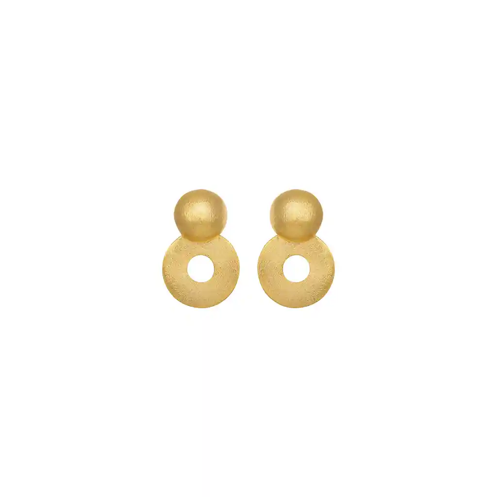 Aretes elaborados a mano en bronce con baño en oro de 24kt. Dos formas de Uso Dimensión: Largo 2.5 cm y Ancho 1.4 cm Se recomienda: No aplicar cremas, perfumes, cosméticos y agua. Mantenerlos libres de humedad. Limpiar con un paño suave para mantener el brillo original. Garantía de 90 días a partir de la fecha de compra.