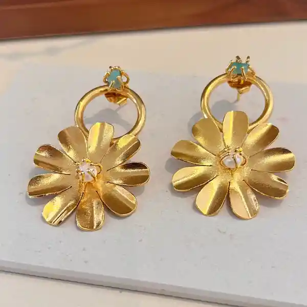 Diseño en bronce bañado en oro, acompañado por piedras naturales
