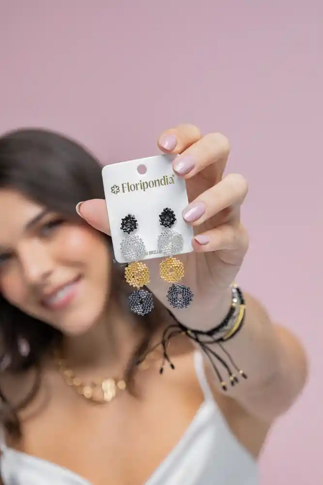 Aretes elaborados en Miyuki Japonés. Base en Bronce con baño de oro de 24k. Incluye: 1 par de aretes miyuki negro combinados. Recibe con tu compra una FLORIBAG gratis, para que guardes por separado tus accesorios. Hecho a mano en Colombia. * Ten presente que algunas de las imágenes pueden estar ambientadas con otros productos que se venden por separado.