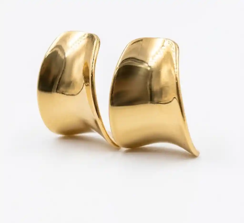 Modernos aretes de acero dorado con un diseño escultural y un acabado pulido a espejo para un brillo deslumbrante.