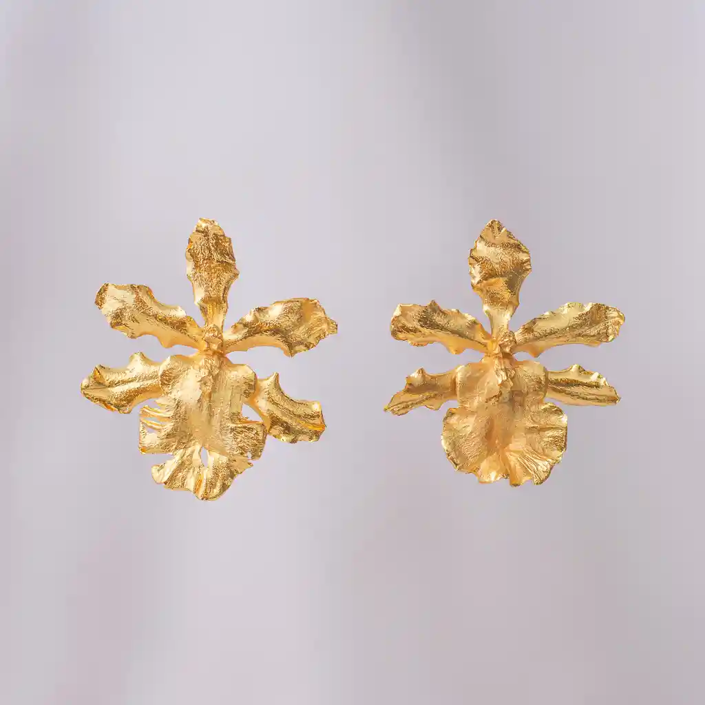 Los Aretes Orquídea Odontoglossum Exótica capturan la belleza singular de una flor colombiana única. Cada orquídea Odontoglossum, cuidadosamente recolectada e inmortalizada mediante fundición orgánica, conserva su textura y forma natural, convirtiéndose en una joya excepcional. El diseño se realza con detalles en esmeraldas colombianas en morralla y un acabado en bronce bañado en oro de 24k, lo que añade un toque de lujo y sofisticación. Material: Flor de orquídea Odontoglossum inmortalizada en bronce con baño de oro de 24k y esmeraldas en morralla. Diseño Artesanal: Cada flor es única, reflejando las características naturales de la orquídea, y elaborada artesanalmente para resaltar su exclusividad y autenticidad.