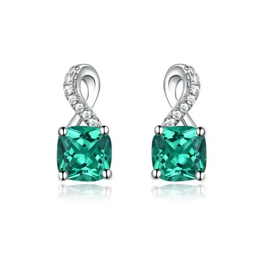 ARETES EN PLATA CON ESMERALDA - Aretes para mujer. - Fabricados en plata 925. - Esmeralda rusa elaborada en laboratorio. - Incluye GRATIS estuche. - Collar se vende por separado. - Joyería de diseño actual. - Producto importado.