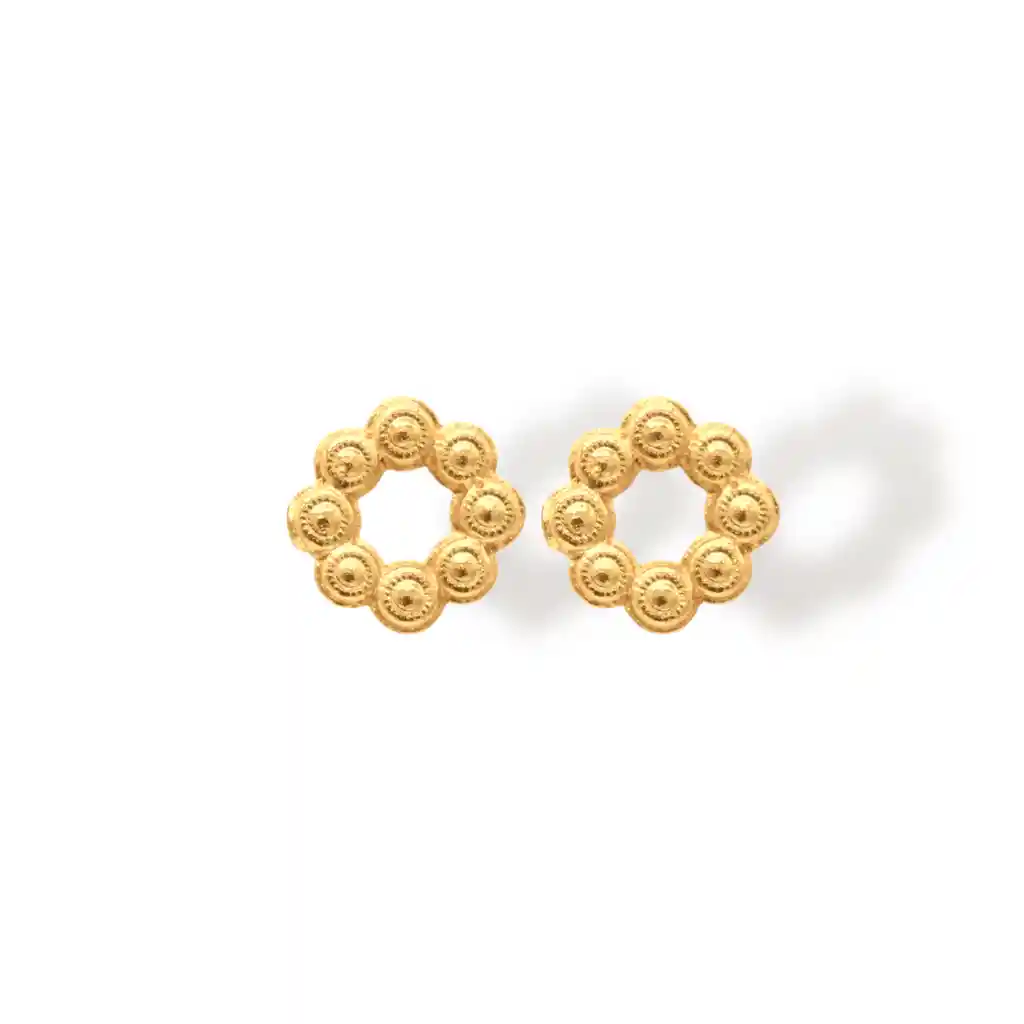 Estos pendientes elegantes tienen un aire orgánico y natural. Se basan en el ciclo de la vida y representan el "crecimiento" de una mujer increíble. Fabricados en bronce con baño de oro de 24 kilates. Su diseño sutil permite adaptarse a diario, al trabajo, o en ocasiones especiales.