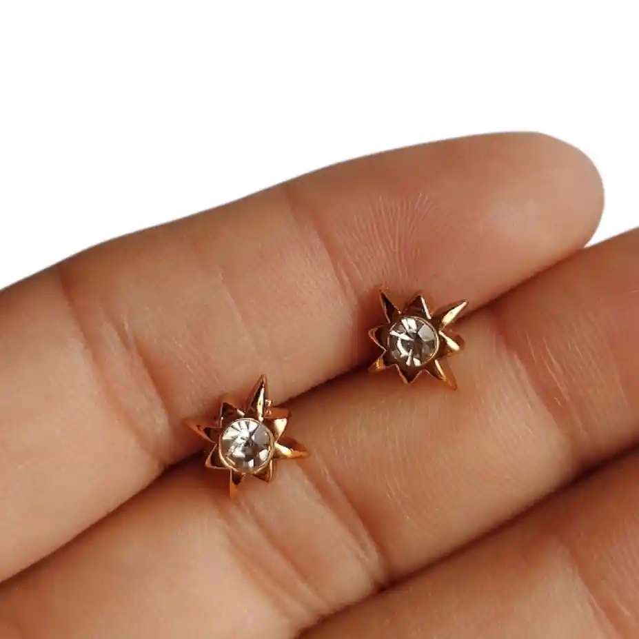 Aretes Pequeños Dorados con Gema Estrella Copo Topo