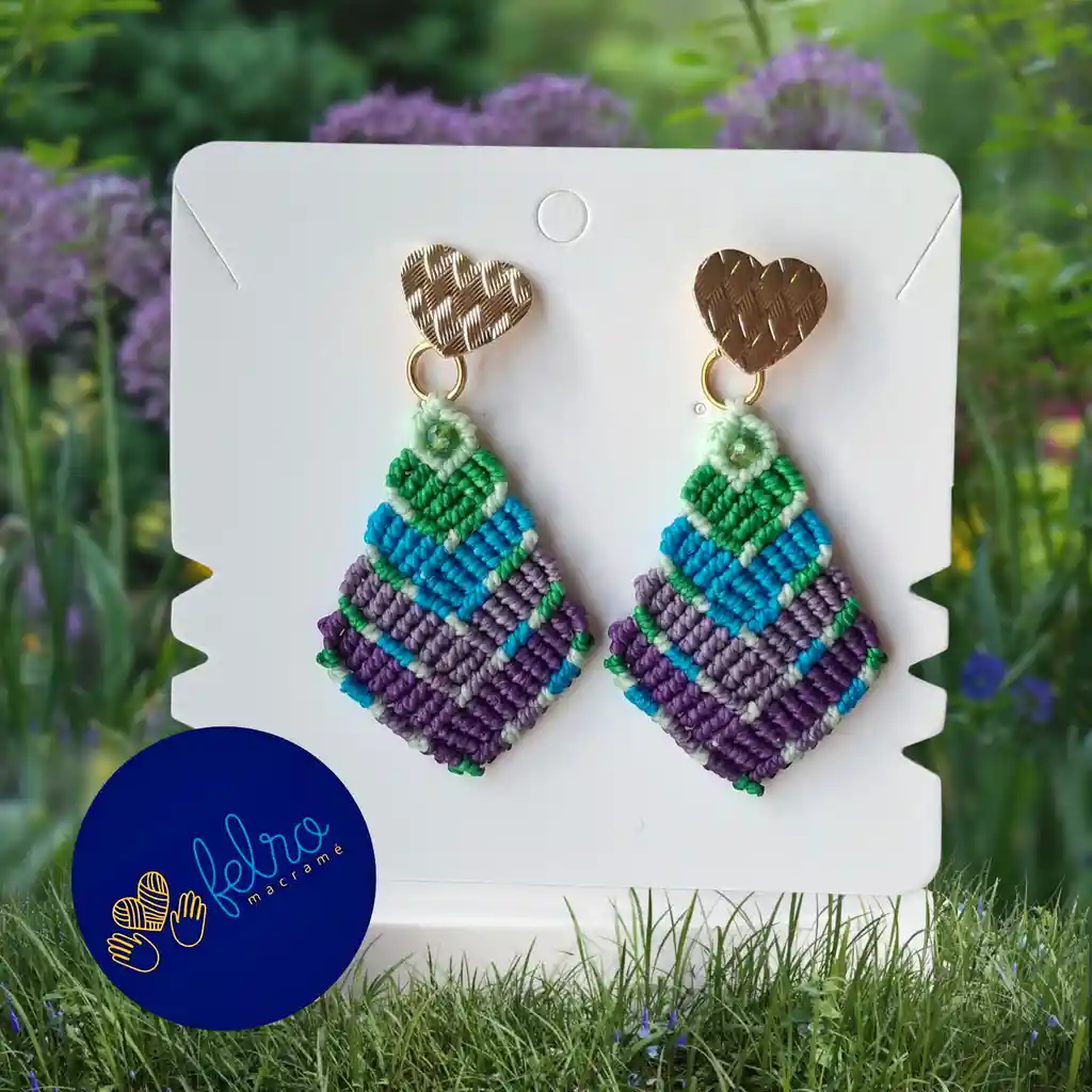 Aretes Pirámide Jardín Místico en Micro-macramé 🪢 Un pequeño jardín lleno de magia convertido en joya. Los Aretes Pirámide Jardín Místico combinan geometría y naturaleza en una pieza única, inspirada en la frescura del verde navidad, la calma del azul claro y la profundidad del lila y el morado. Un diseño que transmite equilibrio, misterio y conexión interior. Cada par está tejido a mano en micro-macramé, cuidando cada nudo para lograr una joya artesanal con carácter y elegancia. Su forma piramidal simboliza estabilidad y energía, ideal para quienes buscan accesorios con significado y estilo propio. 🌿 Detalles que los hacen especiales: Diseño pirámide de inspiración natural y mística Elaborados a mano en hilo encerado duradero Topos en ensamble oro Goldfilled Aro en acero inoxidable, resistente y cómodo Colores: verde navidad, azul claro, lila y morado Altura de 5 cm, ligeros y versátiles Perfectos para elevar un look diario o complementar un estilo bohemio y elegante. ✨ Gracias por elegir arte hecho a mano. Que estos aretes te acompañen como un amuleto de belleza, armonía y energía positiva. 🌙🪢💜