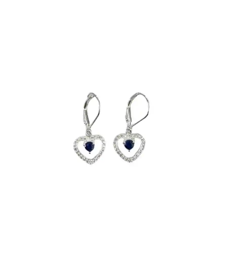ARETES PLATA LEY 925 CORAZON CON BRILLOS AZUL ORIGINAL + BOLSITA DE TELA