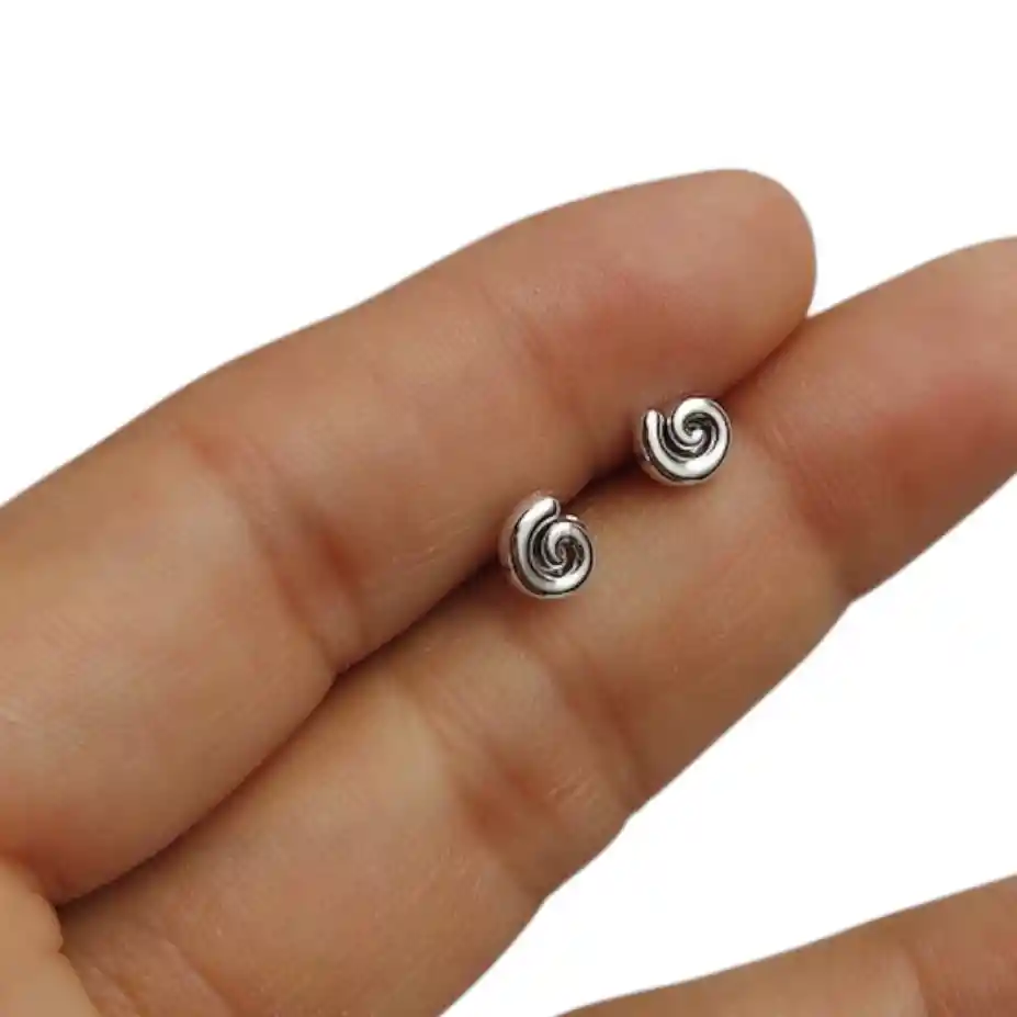 Aretes Plateados Espiral Caracol Pequeños Minimalista