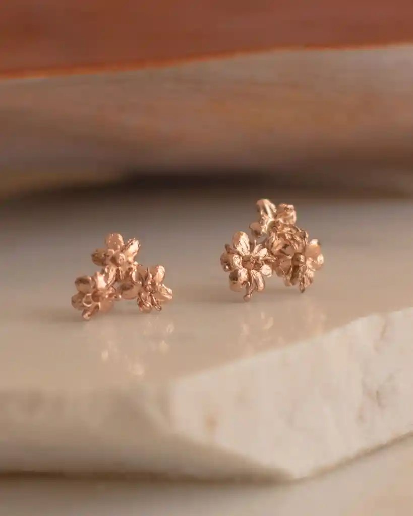 Aretes con flor en miniatura de sauco natural inmortalizados en metal y chapados en oro de 24 kilates / con protección en laca cataforética (evita daños por el tiempo y el ambiente). Joyeria Natural Inmortalizada Hecha a Mano por artesanos Colombianos. La imagen es de referencia y el producto final puede tener variaciones mas que todo en forma y tamaño, debido a que cada joya se realiza con una pieza original natural. No utilizamos moldes. El topo tiene entre 2 y 3 flores de Sauco. Joyas Naturales, Joyas Inmortalizadas, Naturaleza Inmortalizada, Naturaleza Colombiana. Material: Objeto natural recubierto en cobre puro y enchapado en oro de 24 kilates
