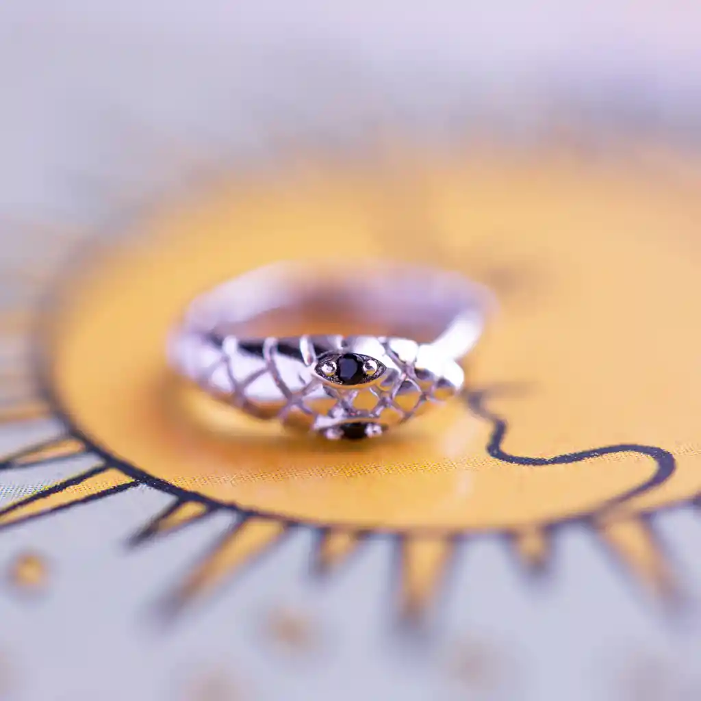 Par de mini hoops con motivo de serpiente elaborados en plata ley 925 y circones negros