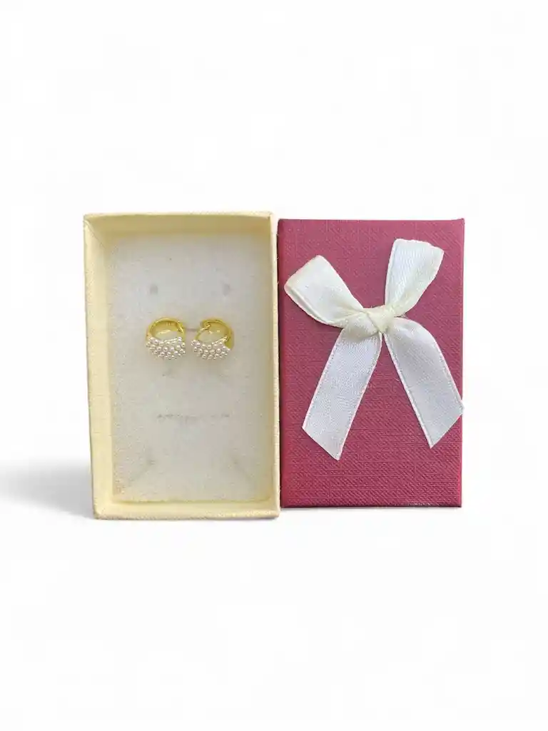 Aretes Tipo Candonga Diseño De Perlas Blancas Con Dorado En Rodio