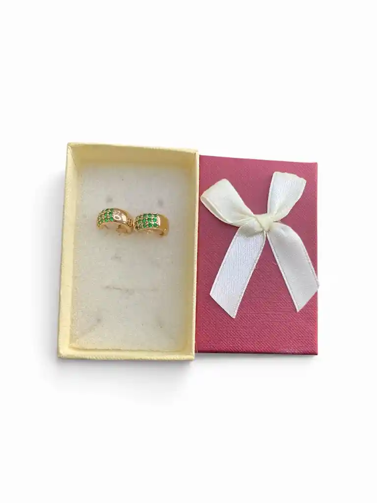 Aretes Tipo Candonga Mediana Con Diseño De Piedras Verdes Con Dorado En Rodio