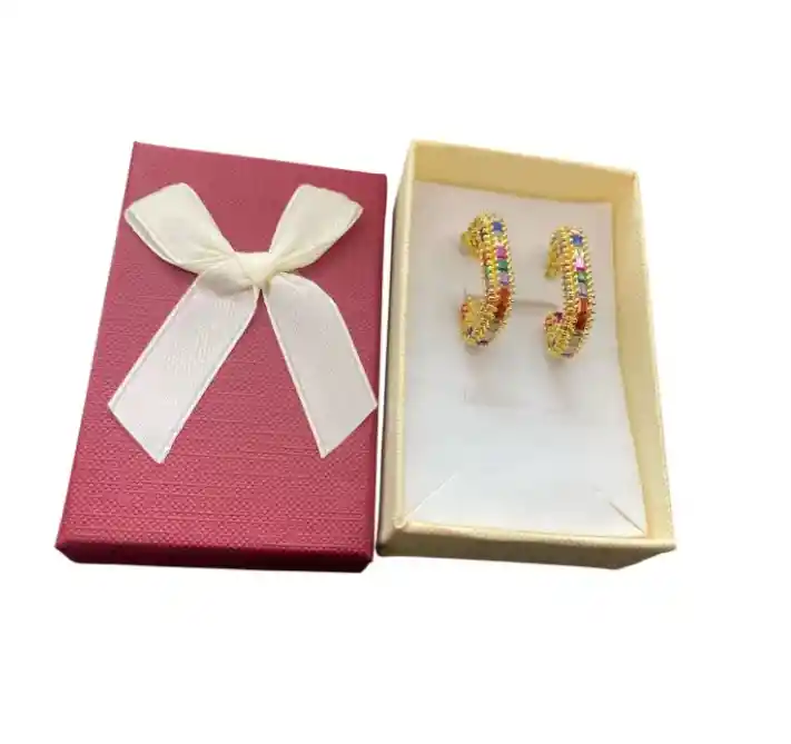 ARETES TIPO CANDONGA MEDIANA EN ACERO DISEÑO RECTANGULAR CON PIEDRAS DE COLORES