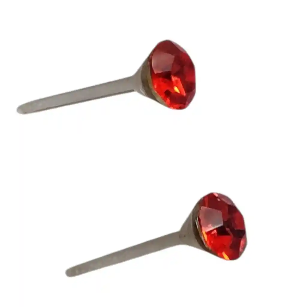 Aretes Tipo Diamante Rojos Redondos Pequeños 0.4 Cm Fantasia