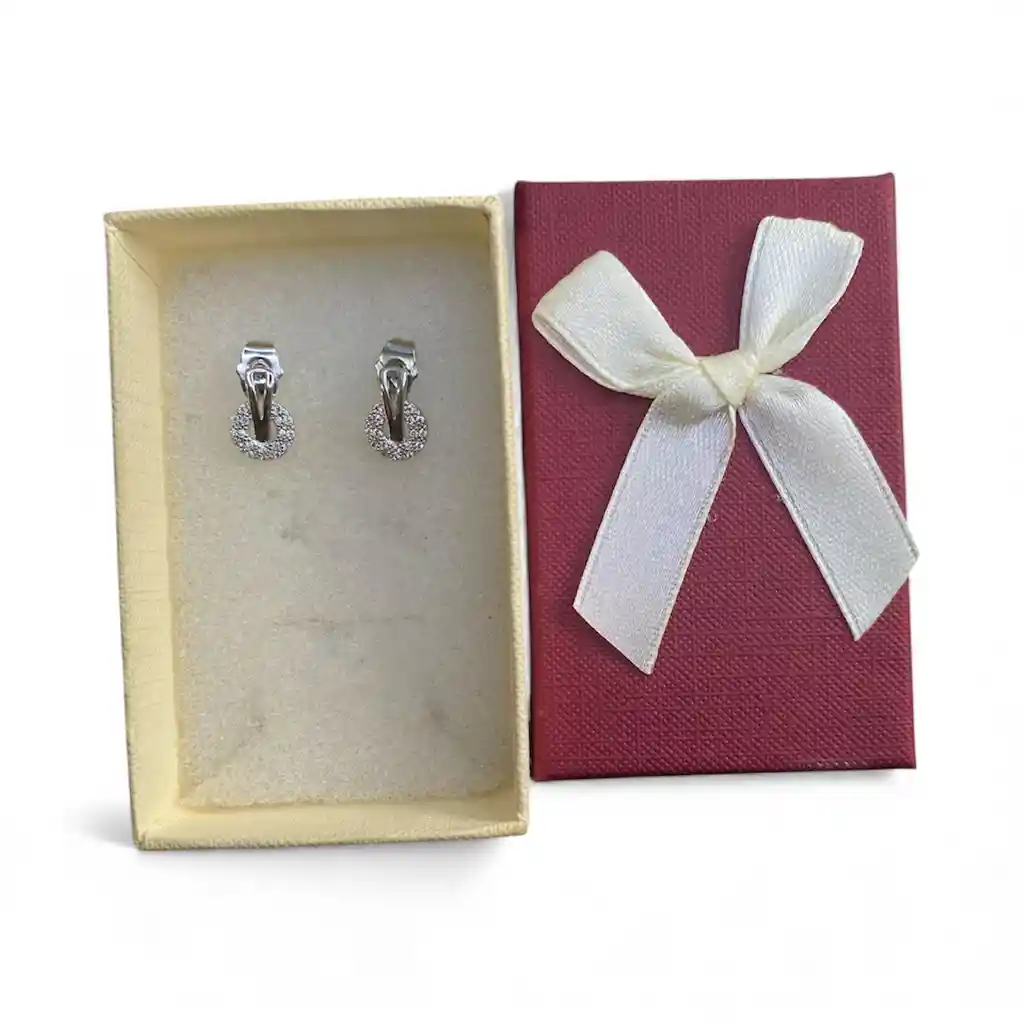 Aretes Tipo Topo Con Diseño Colgante Circular Color Plateado