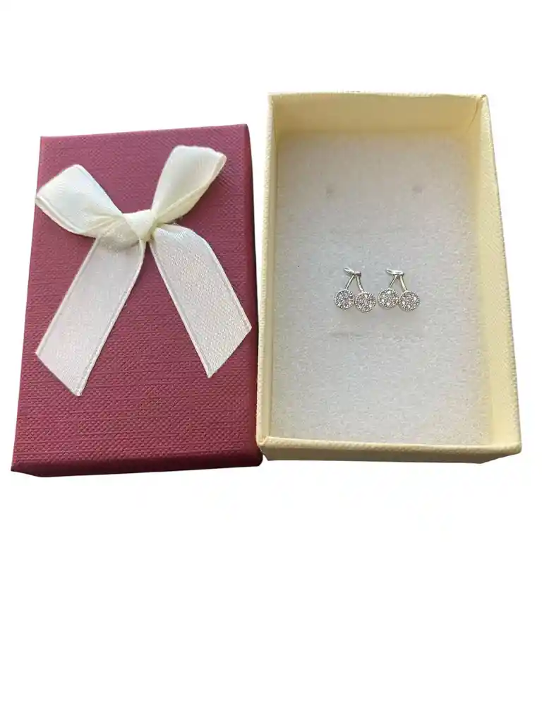 ARETES TIPO TOPO CON DISEÑO DE CEREZAS CON PIEDRAS EN FANTASIA