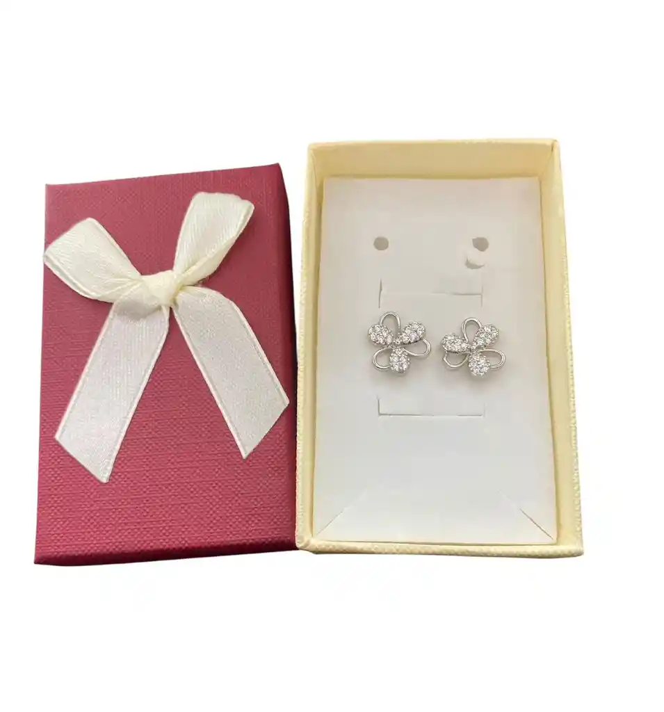 ARETES TIPO TOPO CON DISEÑO DE FLOR CON PIEDRAS EN COVER GOLD
