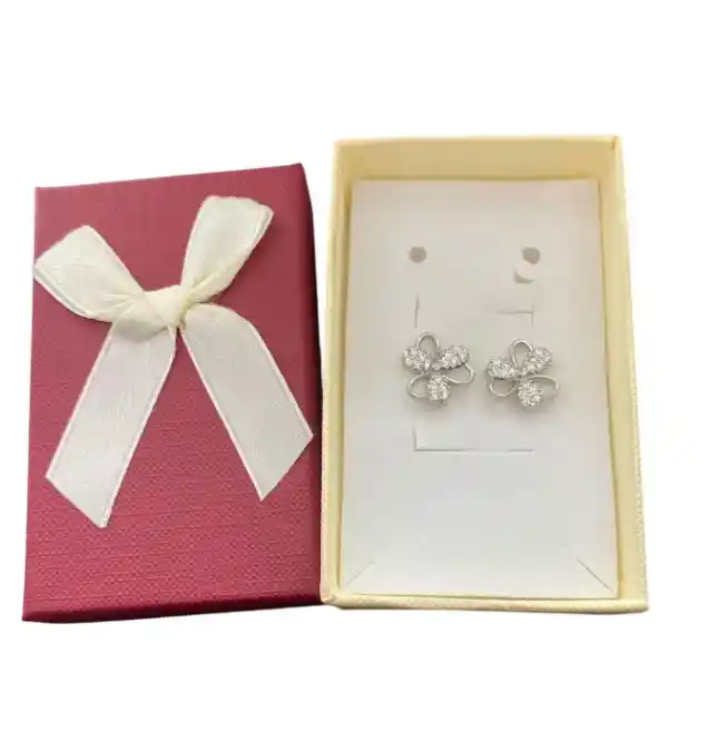 ARETES TIPO TOPO CON DISEÑO DE FLOR CON PIEDRAS EN COVER GOLD