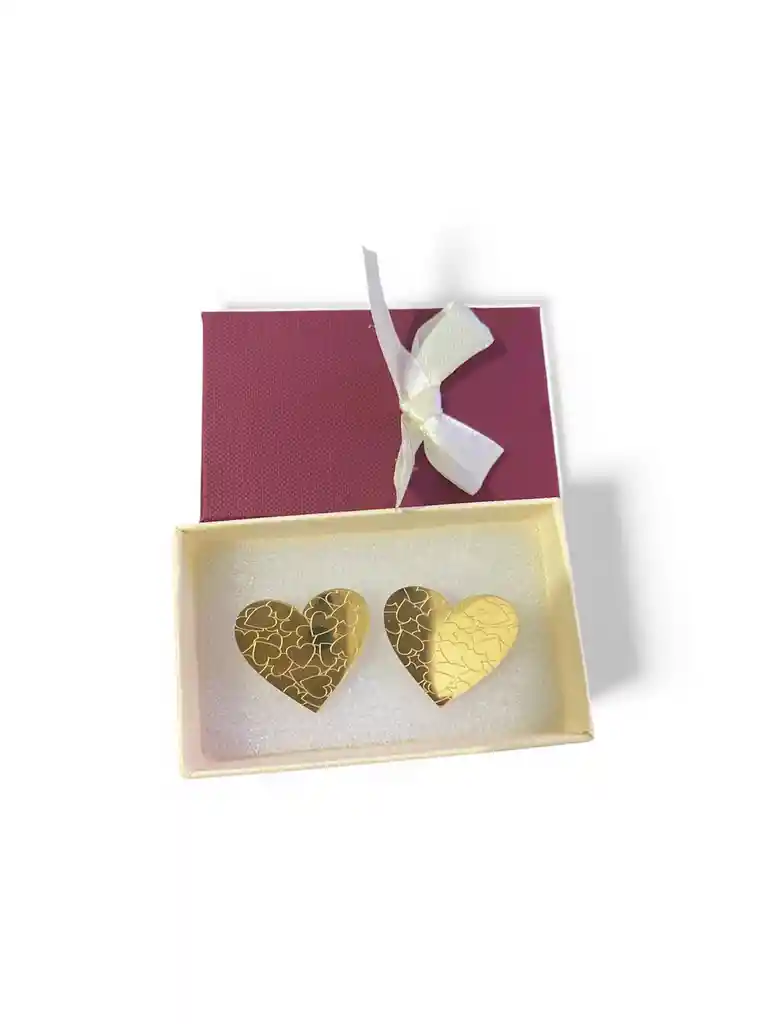 Aretes Tipo Topo Diseño De Corazones Dorado