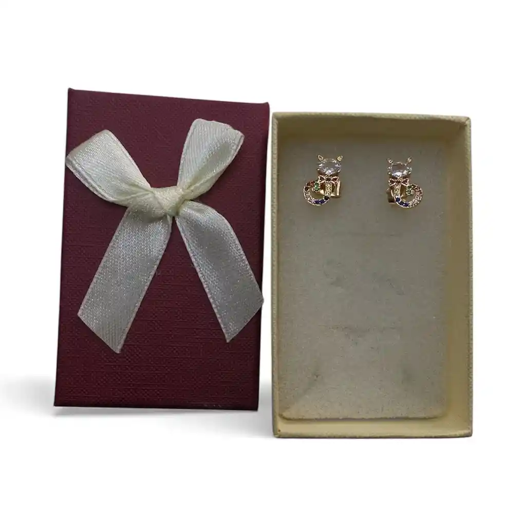 Aretes Tipo Topo Diseño De Gato Con Piedras De Colores Como Azules Verdes Rojas Y Rosadas