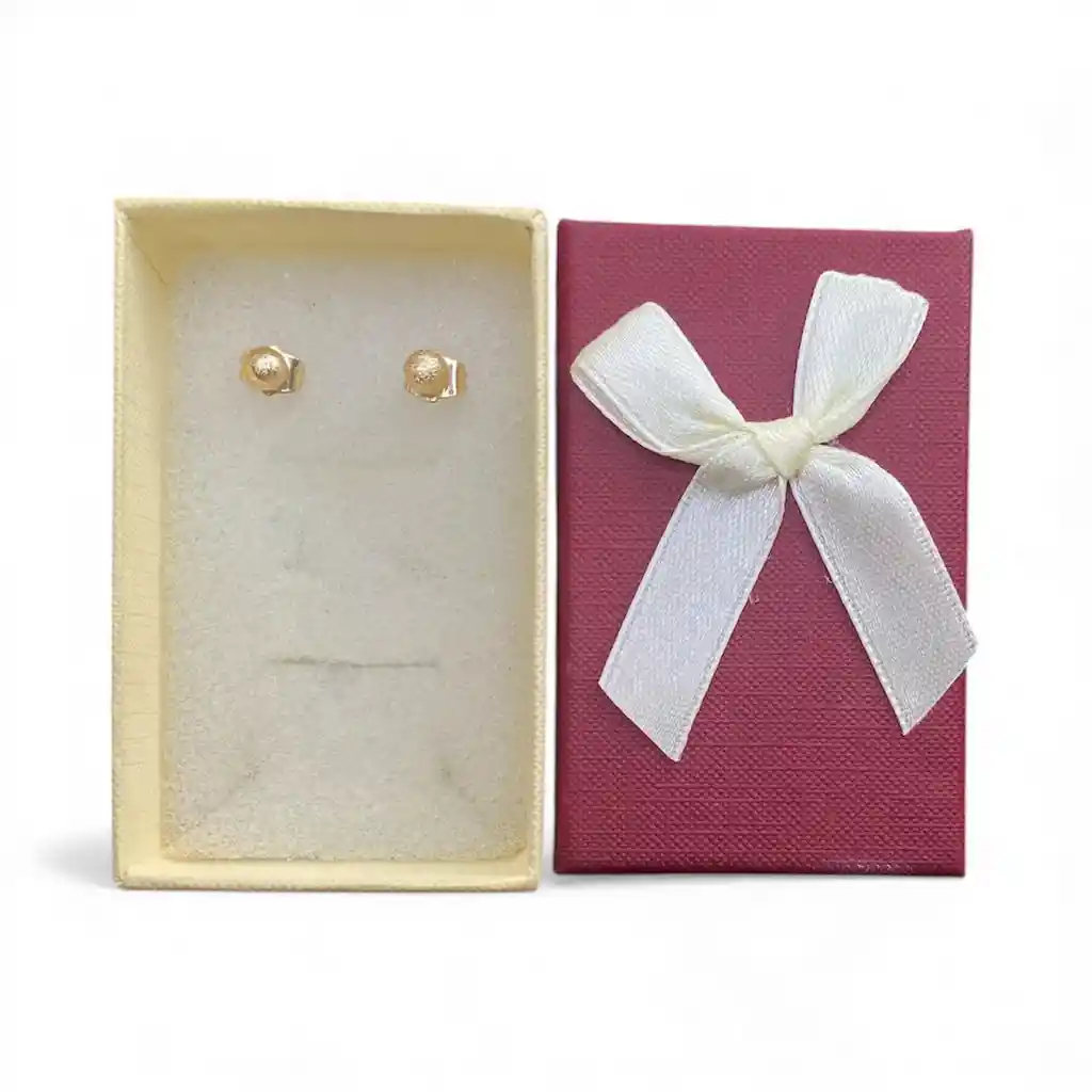 Aretes Tipo Topo Mediano Con Diseño De Bola Color Dorado En Rodio