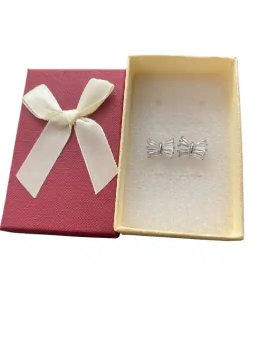 ARETES TIPO TOPO PEQUEÑO CON DISEÑO DE MOÑO CON PIEDRAS EN COVER GOLD