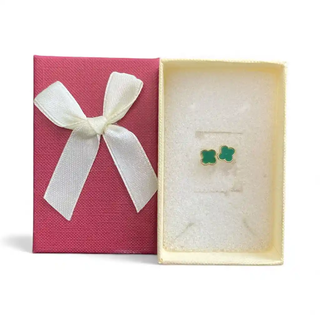 Aretes Tipo Topo Pequeño Con Diseño De Trebol Color Verde