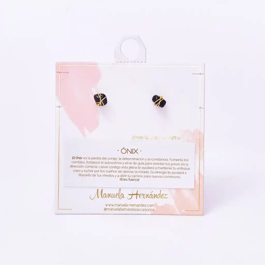Apliques Dorados con Baño de Oro 18k. Elaborado con Ónix Natural. Pin antialérgico.