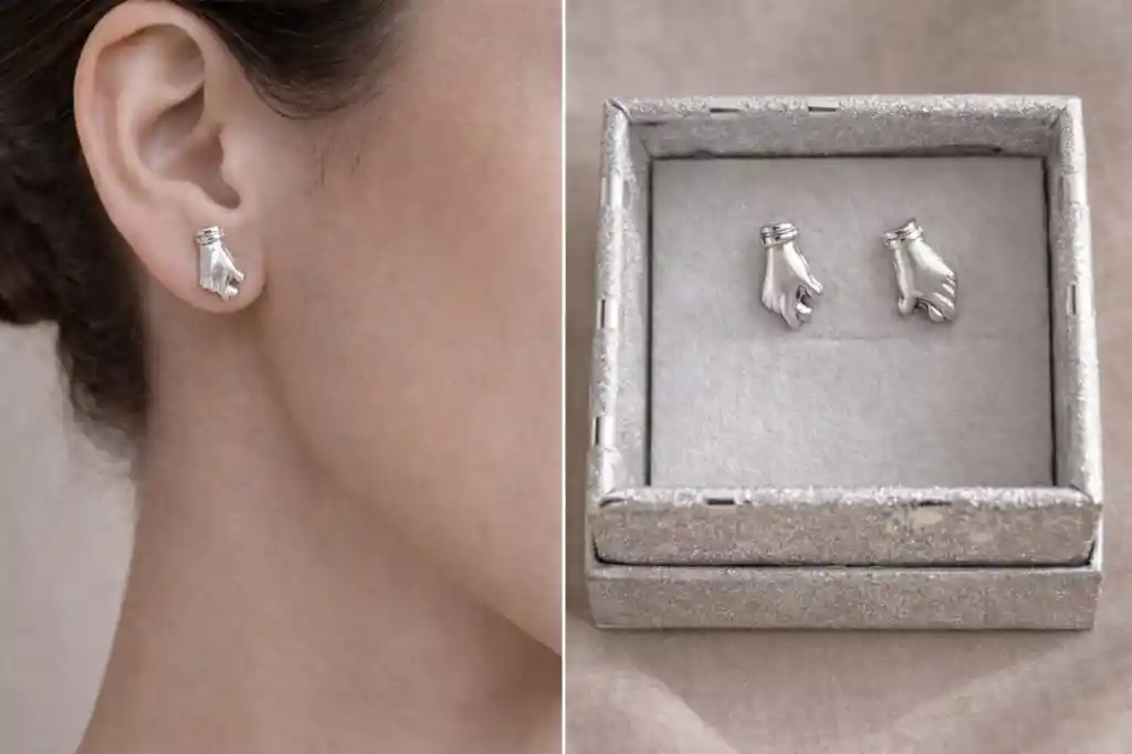 ARETES: TOPOS MANOS DE PLATA 925 Topos en plata – Manos Topos elaborados en plata, diseño de manos con acabado brillante. Medidas: largo 0,8 cm y ancho 0,8 cm. Presentados en modelo, ideales para uso diario o regalo.