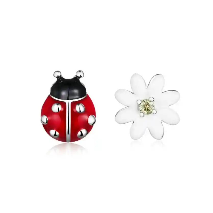 Aretes Topos Mariquita Flor Para Mujer En Plata 925
