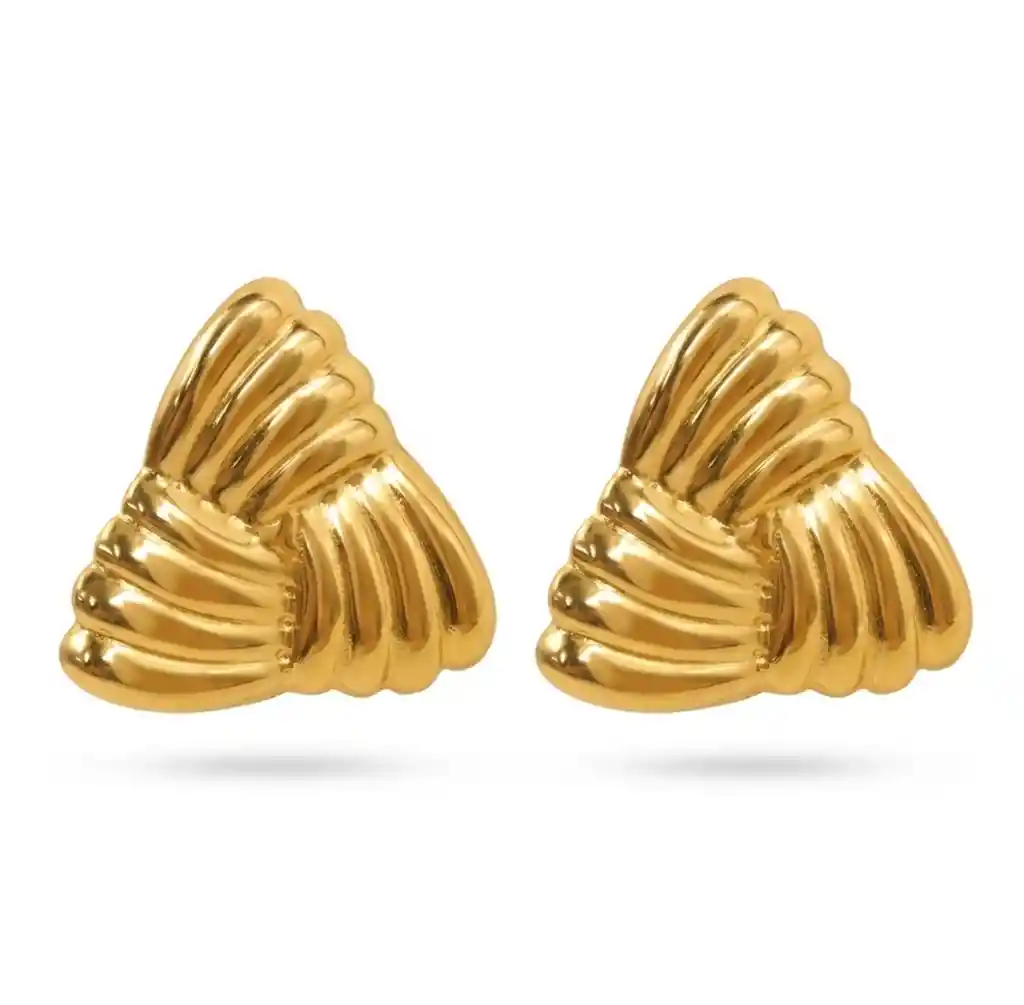 Elegantes topos triangulares de acero dorado con relieve ondulado para un brillo sofisticado y moderno.