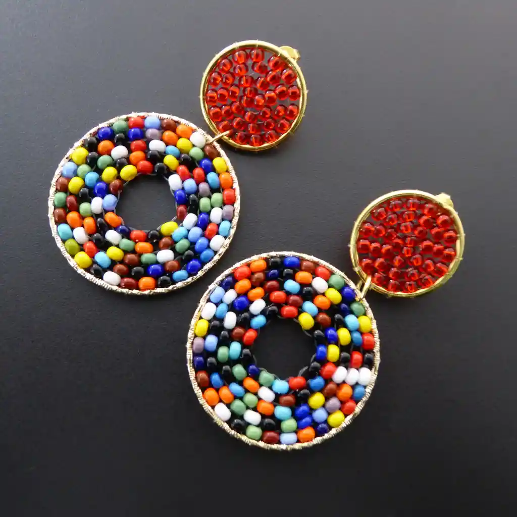 Maxi Aretes Alhajas Para Mujer- Aretes tejidos a mano para mujer.- Topos en bronce con baño en oro de 24k.- Fabricados con mostacilla checa.- Diámetro: 3.5 cm.- Joyería de diseño actual.- Perfectos para regalos especiales.- Accesorio elegante y exclusivo para toda ocasión.Alhajas es una tienda virtual de joyas y accesorios para mujer con productos propios elaborados a mano por las artesanas de Tienda Alhajas, y productos nacionales e importados de reconocidas marcas del sector. Gracias a la permanente búsqueda de productos exclusivos logra satisfacer las necesidades de la mujer que busca lucir e impresionar al mundo con su estilo y buen gusto. Alhajas ofrece lo último en tendencias, diseño y estilo en joyas y accesorios en Colombia.Empresa seria legalmente constituida. Productos 100% garantizados.ALHAJAS JOYAS & ACCESORIOS SAS NIT 900.846.471-1 Matrícula mercantil: 2550521.