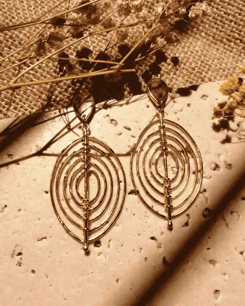 Aretes universo; Aretes en bronce con baño en oro 24k en forma de universo, diseñados para aportar un toque radiante y distintivo al look, ideales para complementar tanto atuendos casuales como elegantes,;Tipo: Aretes Universo Diseño: Inspirado en la forma del universo Estilo: Versátil para uso casual o elegante Material: Metales y acabados de alta calidad Uso: Accesorio para realzar el estilo en cualquier ocasión