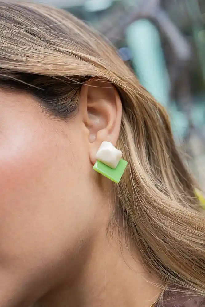 Aretes elaborados en acabado acrílico Premium, ultralivianos y de color vibrante. Incluye: 1 par de aretes verde combinado. Recibe con tu compra una FLORIBAG gratis, para que guardes por separado tus accesorios. Hecho a mano en Colombia. *Ten presente que algunas de las imágenes pueden estar ambientadas con otros productos que se venden por separado.