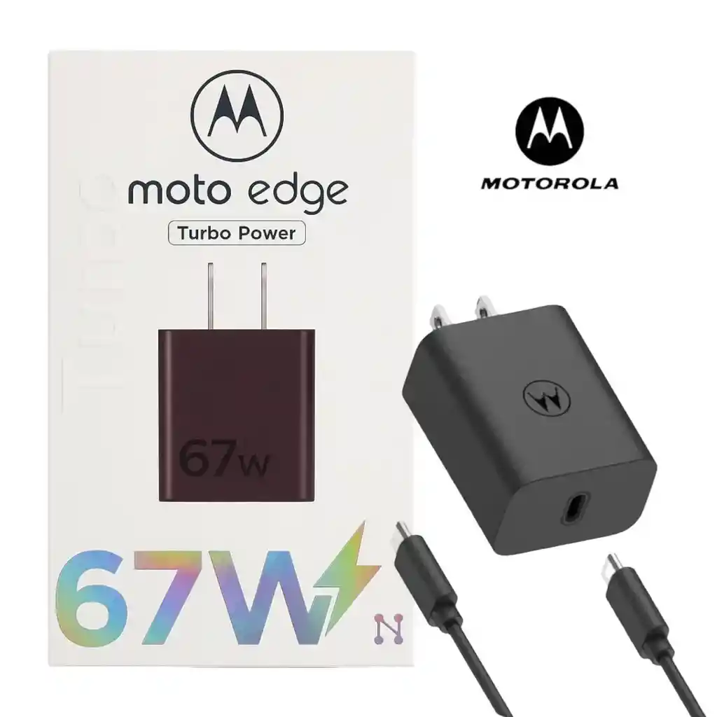 Cargador de Motorola diseñado para ofrecer una carga rápida y eficiente para los dispositivos compatibles. Con la tecnología Turbo Power, permite una carga veloz sin comprometer la seguridad de la batería. **Características: *Potencia: 67W con salida de 7.5 A, ideal para cargar rápidamente teléfonos inteligentes y otros dispositivos. *Compatibilidad: Funciona con la mayoría de los dispositivos Motorola con conexión USB Tipo C. *Tecnología de carga rápida: Optimiza el tiempo de carga, permitiendo que tu dispositivo se recargue más rápidamente en comparación con cargadores estándar. *Diseño compacto: Fácil de transportar, perfecto para usar en casa, en la oficina o durante viajes. ¿Qué incluye la Caja? 1 Cargador 67w Turbo Power (Contramarcado) 1 Cable Tipo C 1 Manual de instrucciones Garantía por defectos de fábrica de 5 días no golpes no cable