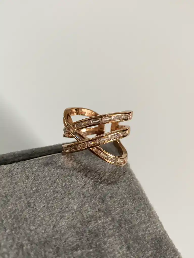 Anillo Oro Rosa Triple con Brillantes. Talla única. Ajustable. Accesorios, Bisutería, Joyería.